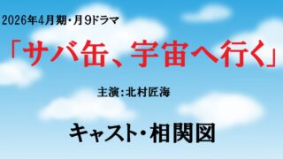 月9ドラマ【サバ缶、宇宙へ行く】のキャスト・相関図・生徒役・内容・見どころ・スタッフ・放送日を紹介します。2026年4月クールのフジテレビ系月9ドラマは【サバ缶、宇宙へ行く】(#さばうちゅ)を放送!主演は北村匠海。本作で地上波連続ドラマ初主演!