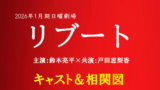 早瀬陸/儀堂歩役 主演 #鈴木亮平 幸後一香役#戸田恵梨香#日曜劇場リブート pic.twitter.com/cjyoxSlGLO — 【公式】日曜劇場『リブート』2026年1月スタート (@reboot_tbs) October 27, 2025