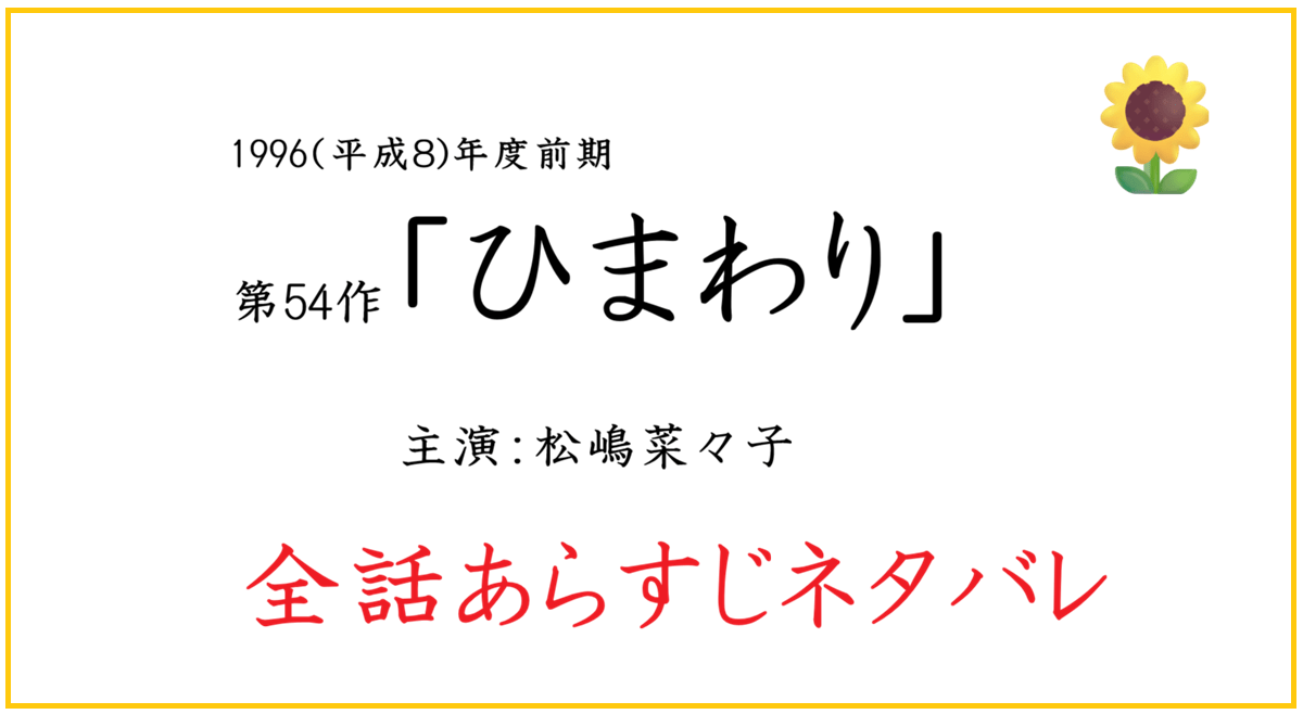 1996(平成8)年度前期の朝ドラ【ひまわり】が2026年4月からNHKBSで再放送!